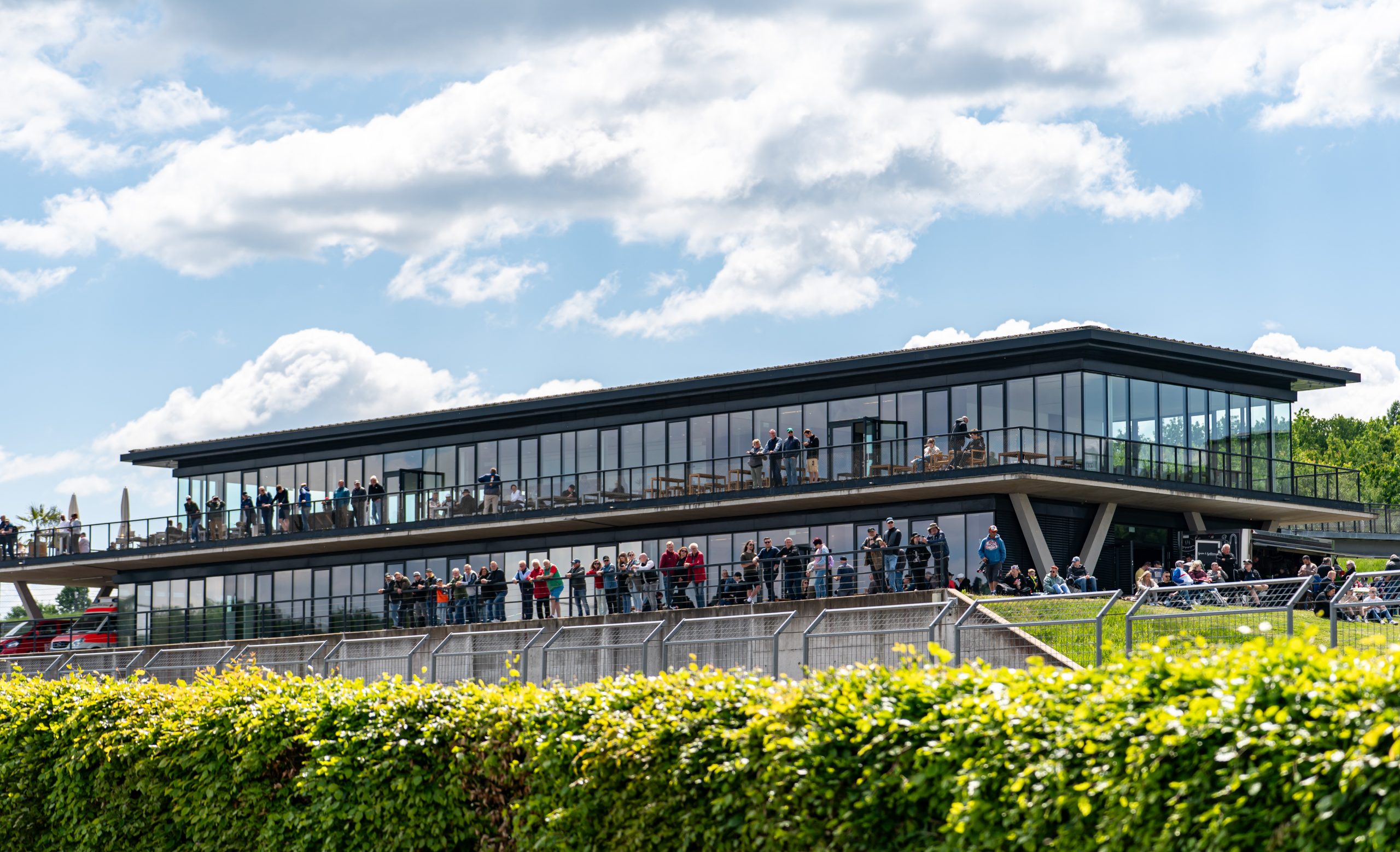 Auch für Zuschauer öffnet sich das Gelände. Von der Terrasse mit Blick auf die Strecke, beim Rundgang durchs Fahrerlager oder beim Besuch der Fahrzeugausstellung lässt sich die Atmosphäre aus nächster Nähe erleben.