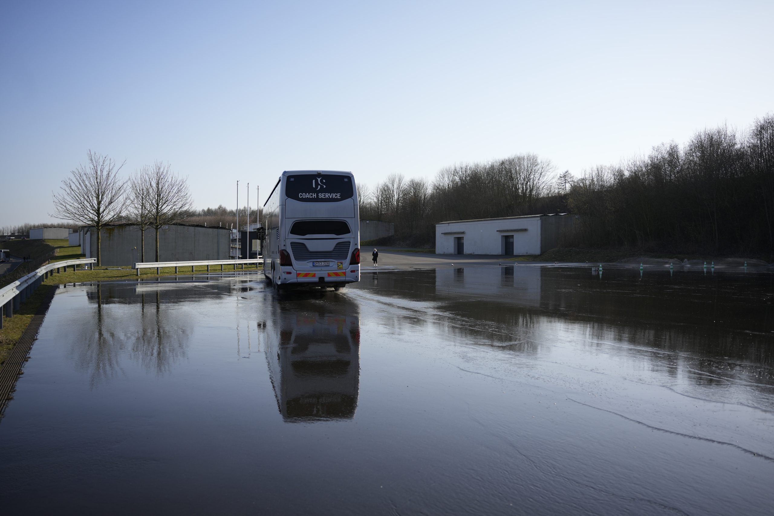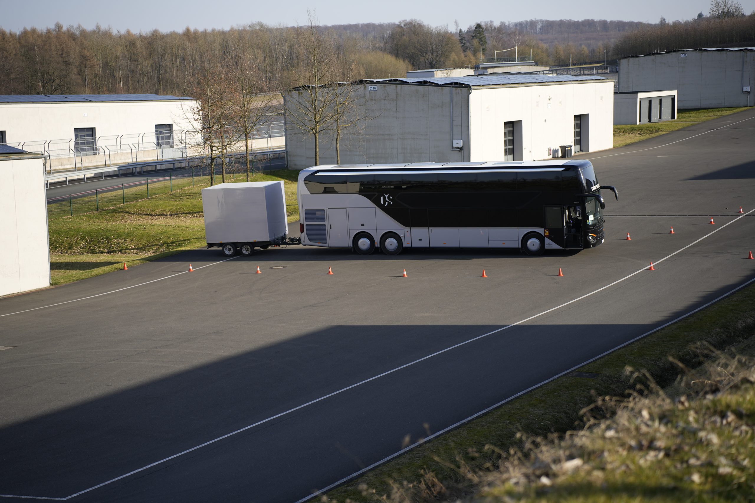 Die Fahrzeuge von Coach Service sind auf lange Strecken und den Betrieb während internationaler Tourneen ausgelegt. Sie verfügen über Schlafplätze, Aufenthaltsbereiche und technische Infrastruktur für mehrtätige Reisen. Entsprechend hoch sind die Anforderungen an Fahrerinnen und Fahrer. Die von Omniplus durchgeführte Schulungen fanden dafür am BILSTER BERG einen passenden Rahmen: eine geschlossene Anlage, unterschiedliche Fahrmodule und ausreichend Platz, um auch komplexe Manöver so realitätsnah wie möglich zu trainieren.