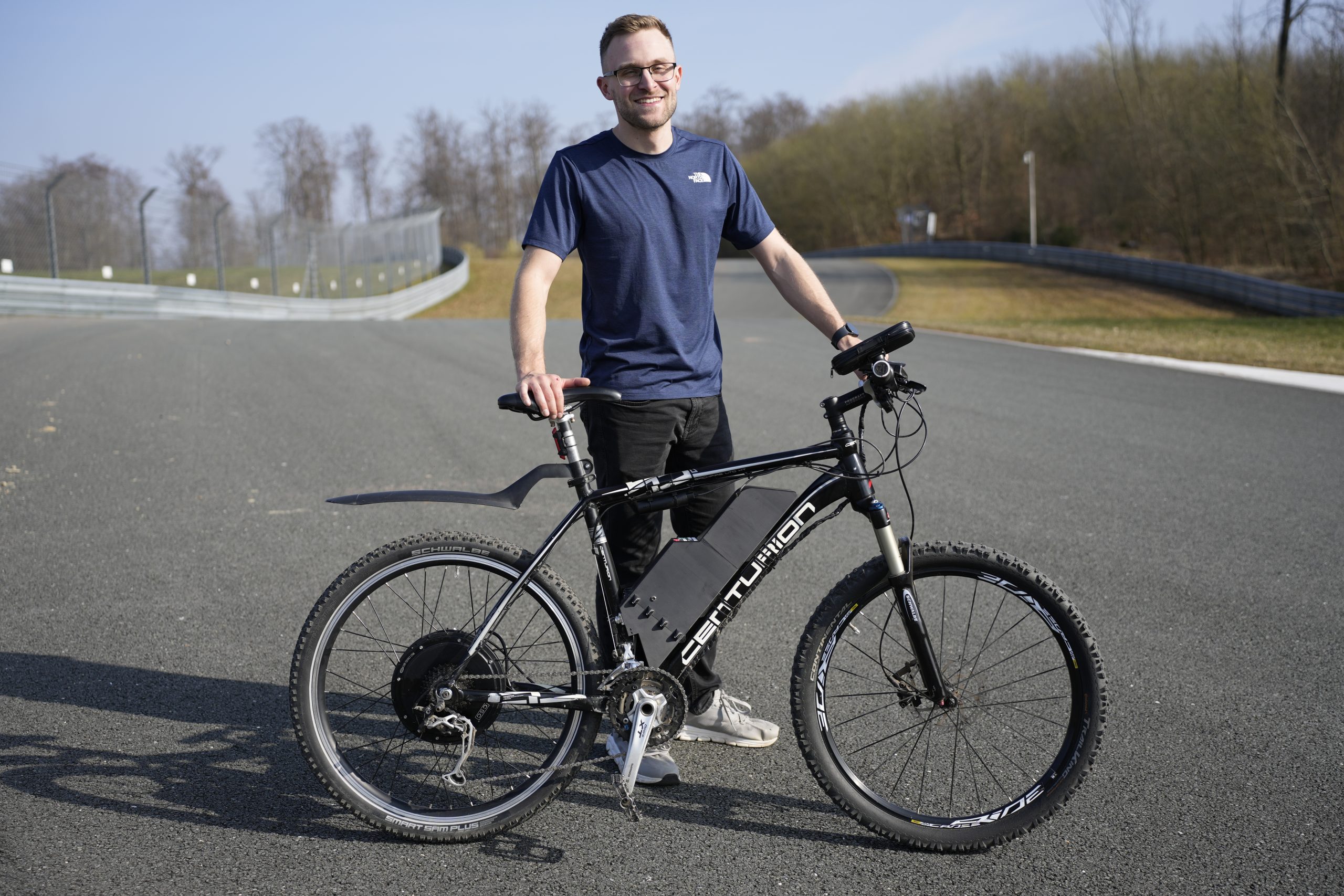 Im Mittelpunkt seiner Arbeit stand ein umgebautes Pedelec, also ein Fahrrad mit Elektromotor, das den Fahrer beim Treten unterstützt. René hat ein herkömmliches Rad so umgerüstet, dass es elektrische Energie nicht nur in mechanische Energie umsetzt, sondern beim Bremsen auch zurückgewinnt, also eine Rekuperation, wie man sie aus Elektroautos kennt.